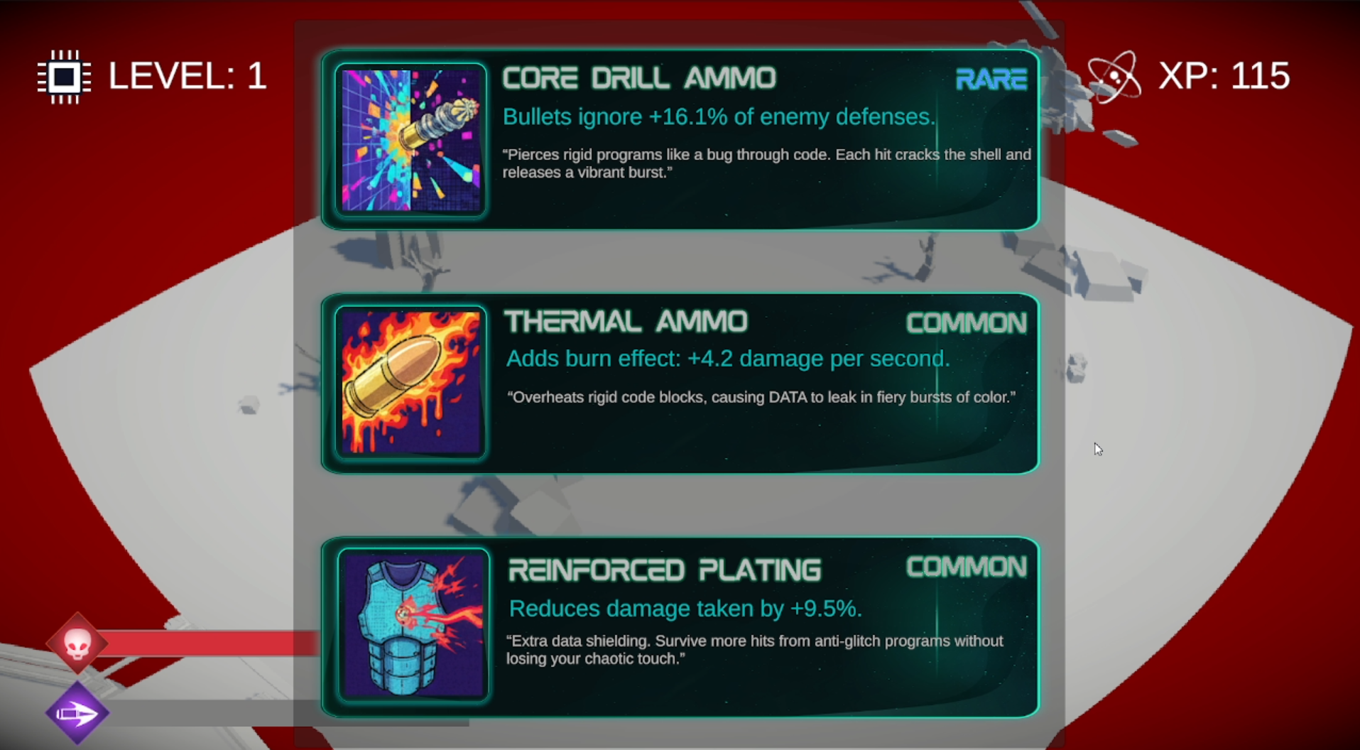 - Evolve the Glitch: After surviving each sector's relentless onslaught, harness the scattered "DATA" from defeated Wardens. Choose from a suite of powerful, stackable upgrades for your: